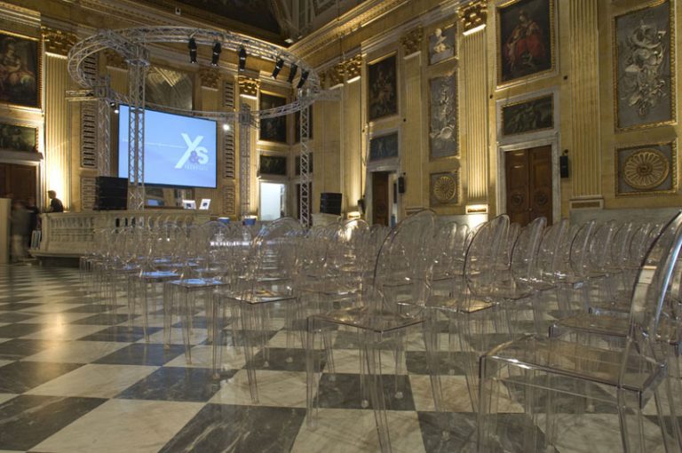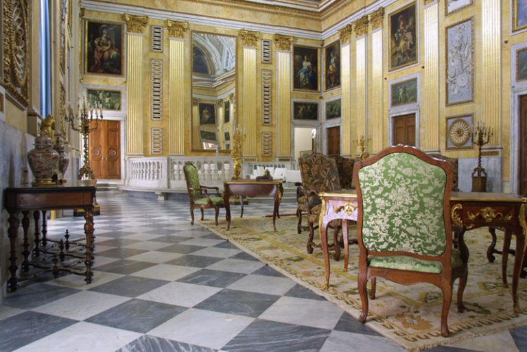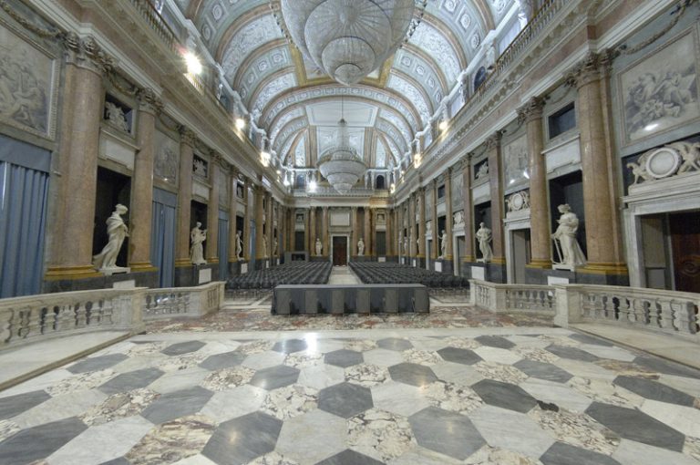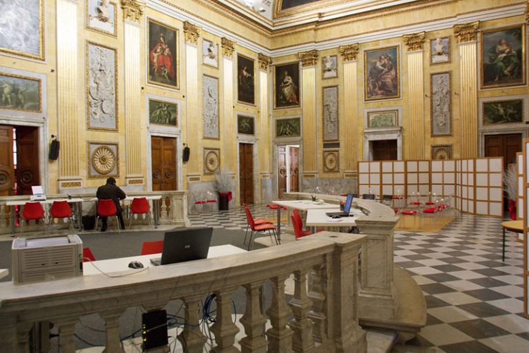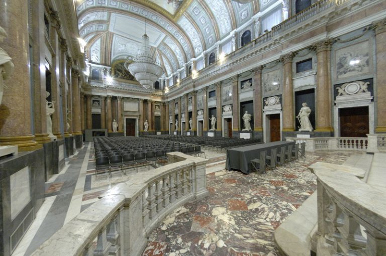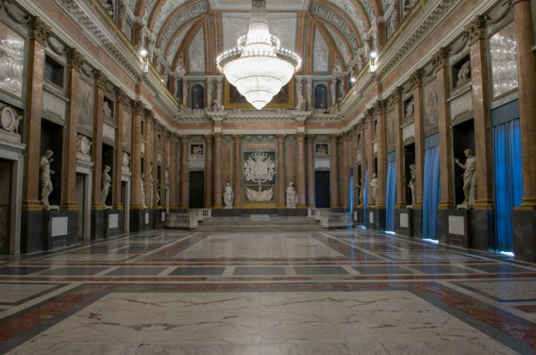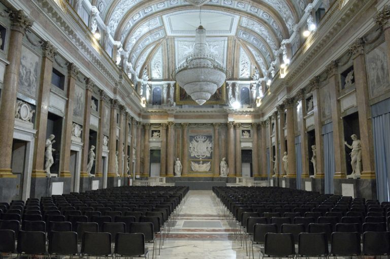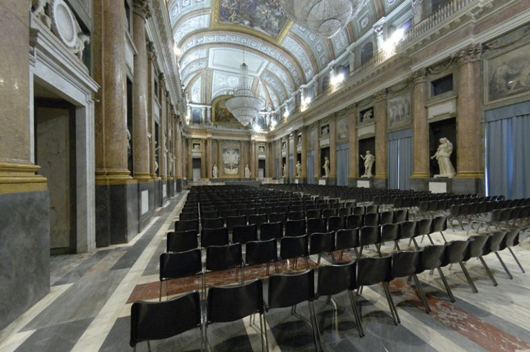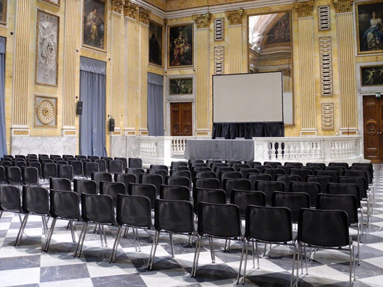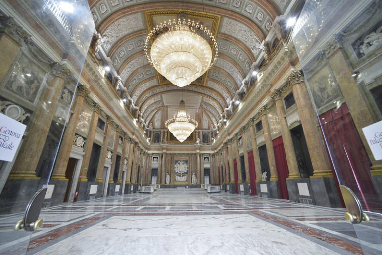 The central body of the Palace houses the halls of the Minor and Major Councils, spaces that in Vannone’s 16th-century design represented the heart and compositional center of the building. The halls we see today are those rebuilt after the 1777 fire by architect Simone Cantoni, who also created their famous inverted keel ceilings and the facade overlooking Piazza Matteotti.