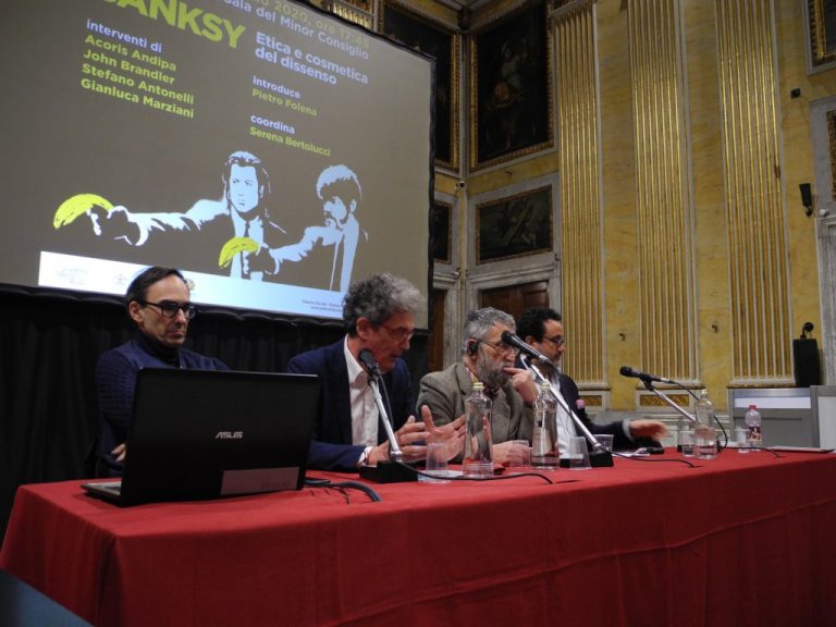 Attraverso gli interventi di Acoris Andipa, John Brandler, Stefano Antonelli, Gianluca Marziani, la conferenza propone un’analisi del lavoro pubblico e privato del misterioso artista britannico per provare a comprendere cosa rende Banksy così rilevante nella cultura contemporanea.Introduce Pietro Folena, coordina Serena Bertolucci.
