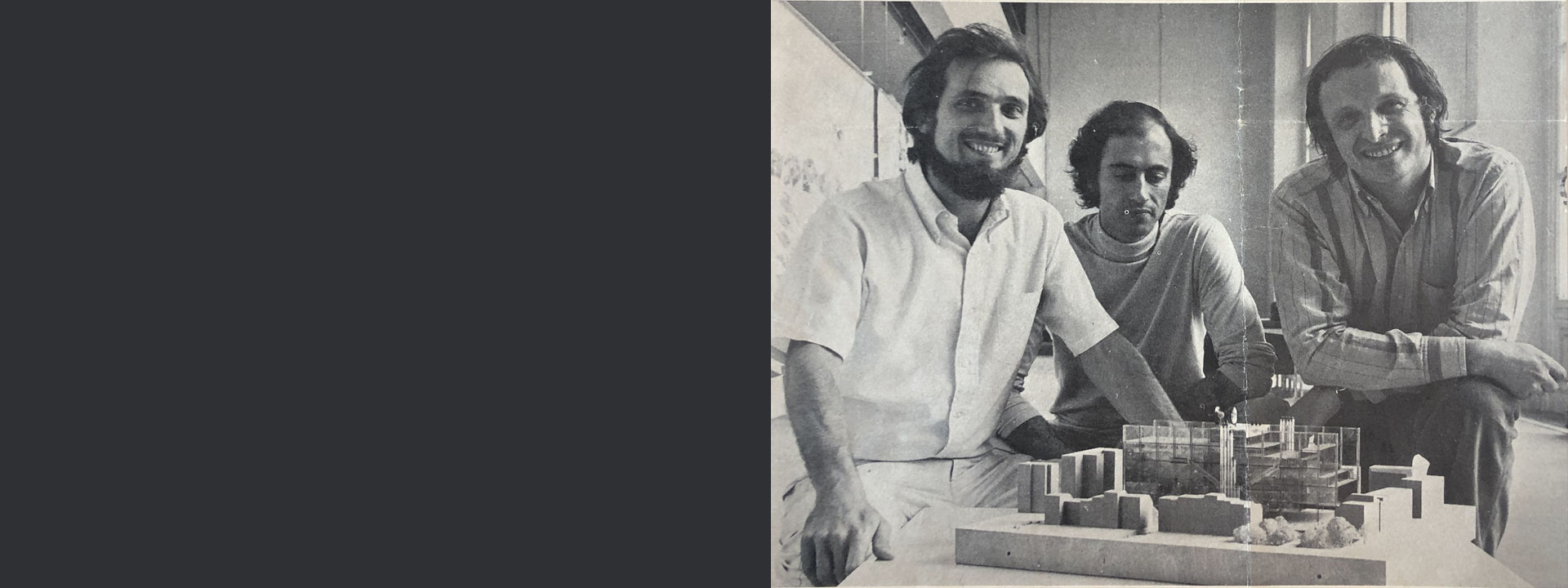 La foto di copertina ritrae (da sinistra) Renzo Piano, Gianfranco Franchini, Richard Rogers, nel quadro di un’intervista alla stampa francese per la presentazione del progetto vincitore del concorso per la realizzazione del Centre Beaubourg (oggi Centre national d’art et de culture Georges Pompidou), autunno 1971