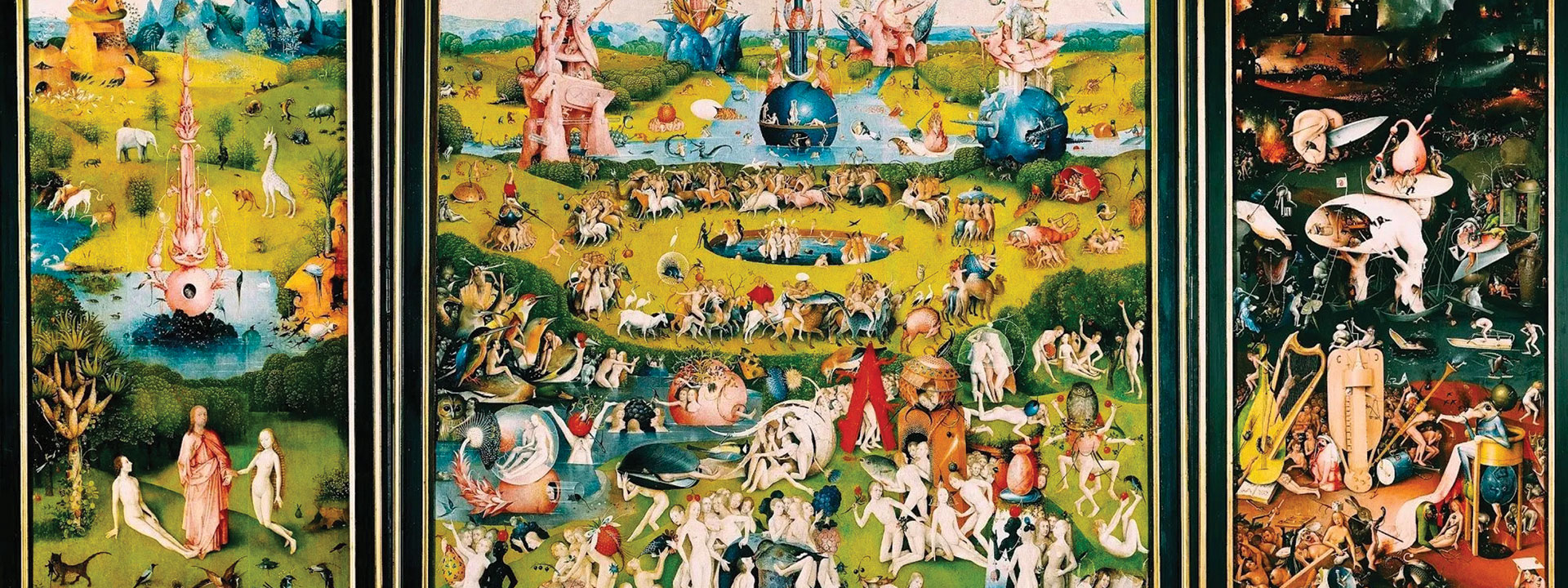 L’opera scelta in copertina è Giardino delle delizie, di Hieronymus Bosch (1480 – 1490 circa), olio su tavola, Museo del Prado di Madrid