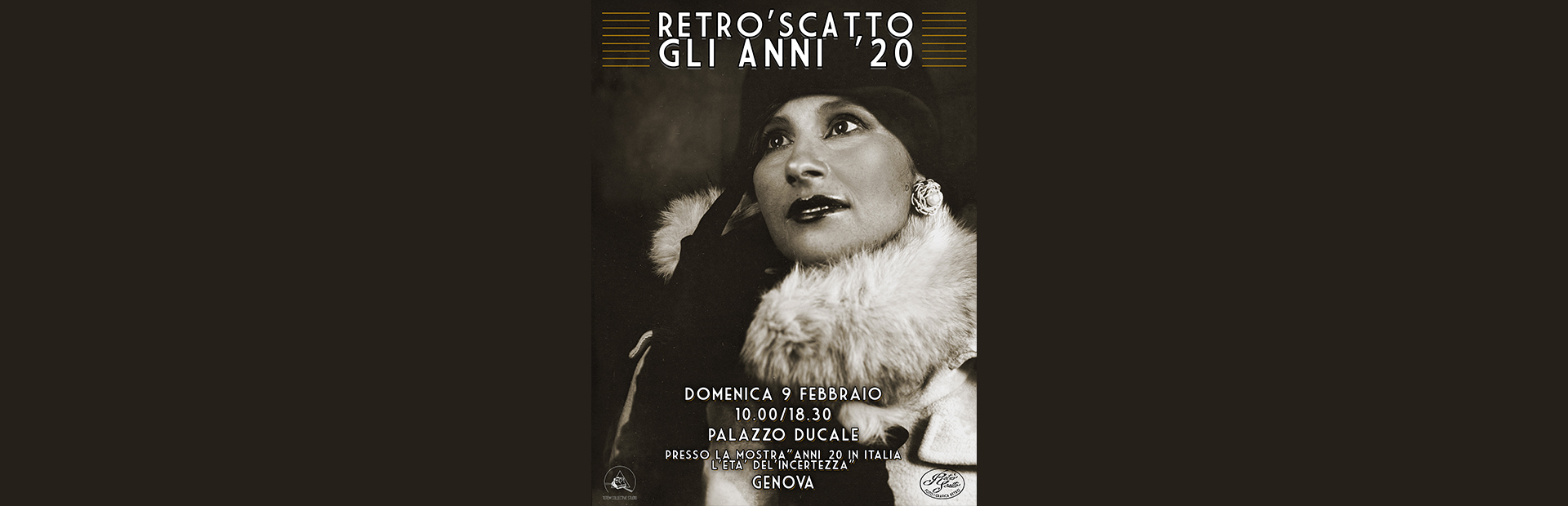 Nell’ambito della mostra Anni Venti in Italia. L’età dell’incertezza, RetròScatto e Totem Collective Studio in collaborazione con Palazzo Ducale propongono una giornata-evento in cui verrà allestito un vero e proprio set fotografico ispirato agli anni ‘20, negli spazi adiacenti alla mostra. Con l’aiuto di accessori, trucchi e oggetti scenici i visitatori della mostra potranno immergersi