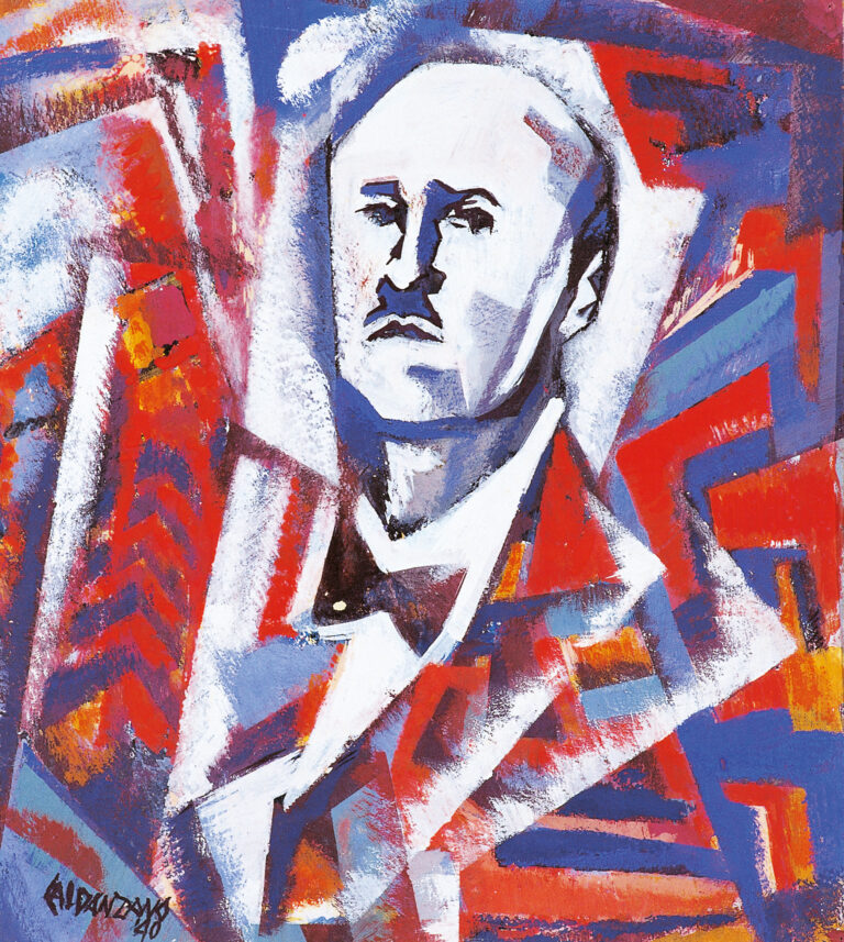 Gigi Caldanzano, Ritratto di Marinetti, 1940, tempera su cartone, cm 38,5 x 34,5, Wolfsoniana – Palazzo Ducale Fondazione per la Cultura, Genova. Donazione Gigi Caldanzano, Savona