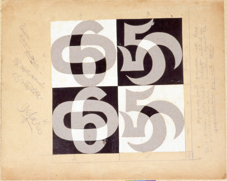 Fortunato Depero, MITA, Genova Nervi, Numeri. Bozzetto per tappeto, 1927, collage su carta, Archivio MITA, Genova Nervi di M.A. Ponis, in comodato presso Wolfsoniana-Palazzo Ducale Fondazione per la Cultura, Genova