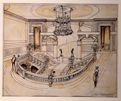 La sala di accesso alla Cappella del Doge si trasforma dal 28 agosto in un vero e proprio spazio espositivo, raccolto ed esclusivo, in cui si propongono alcuni dei progetti di architettura del primo Novecento che più hanno caratterizzato la città di Genova, provenienti dalle collezioni della Wolfsoniana.