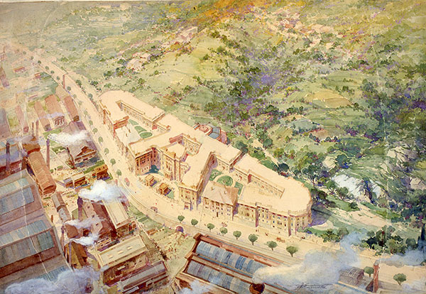 A ponente l’affermazione industriale dell’Ansaldo, che ebbe il suo culmine grazie alla congiuntura bellica tra il 1915 e il 1918, fu incarnata dal piano logistico e architettonico di Adolfo Ravinetti, autore nelle aree di Campi del progetto di alcuni fabbricati in cemento armato i quali, destinati alla produzione di mezzi e materiali militari, coniugavano moderne esigenze funzionali con suggestioni architettoniche d’impianto classico.