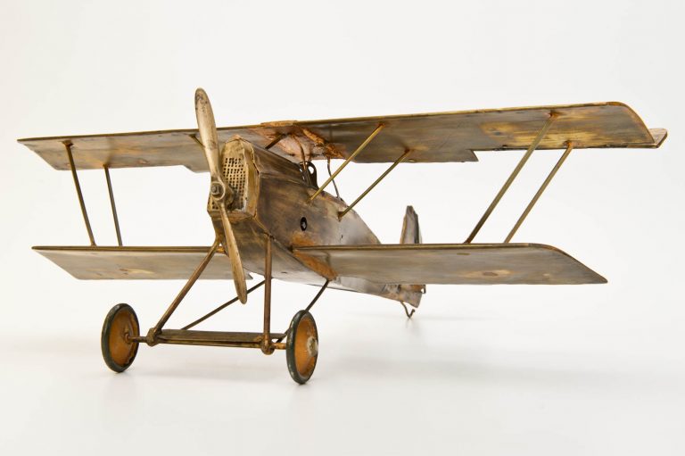 Il percorso espositivo, che intende offrire una prospettiva originale sugli sviluppi dell’aviazione italiana tra le due guerre mondiali e sul rapporto tra questa e le arti figurative, nel momento in cui il volo aereo cominciò a configurarsi come uno degli elementi di modernità per antonomasia, è articolato in quattro sezioni.D’Annunzio e il volo. Le esperienze aviatorie di d’Annunzio sono ricordate, oltre che dal bozzetto di Silvio Bicchi per le decorazioni allegoriche della villa Magni a Canzo, attraverso il modello del suo aereo e una sua lettera del 14 luglio 1918, proveniente dalla Fondazione Ansaldo di Genova, all’ingegner Giuseppe Brezzi, in cui il Vate esprime il suo dolore per la morte improvvisa del capitano Bourlot. Era stato infatti l’ingegner Brezzi, l’anno precedente, a disegnare per il poeta il famoso biplano SVA, con cui egli compirà il 9 agosto il celebre raid su Vienna.
