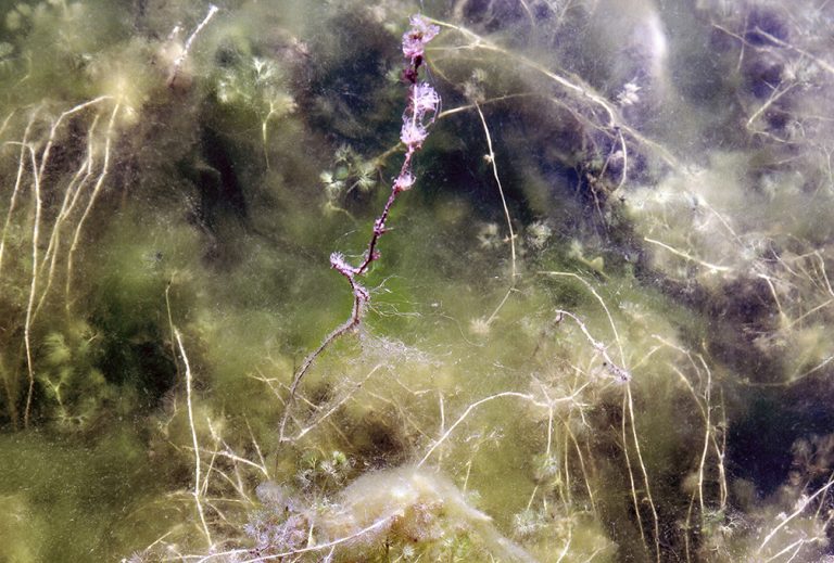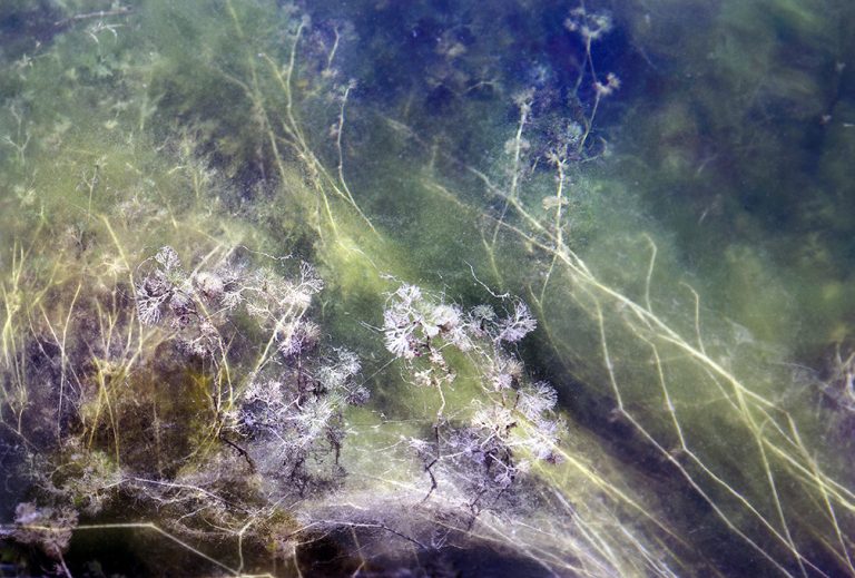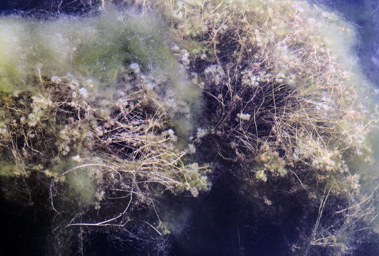 Le prime opere della serie hanno avuto origine nell’autunno del 2019. L’artista è partita da scatti eseguiti in Trentino in un contesto naturalistico affascinante ma austero, con l’incombenza e presenza prepotente delle montagne che imperano. In quel contesto naturalistico per certi versi estremo seppur relativamente vicino ad aree urbane, elementi vegetali delicati e spontanei sono diventati metafora di una fragilità unica e preziosa. Rami, parti di piccoli arbusti, minuscoli fiori, si sovrappongono perdendo totalmente la loro direzione spaziale e diventano parte di un’unica placenta sottile e trasparente. Al punto tale che diventa presso che impossibile identificarne la specie o anche solo la categoria. A quel punto l’essere vegetale diventa più genericamente una entità biologica e materia organica ed un totem spirituale. Difficile connotare l’oggetto raffigurato nella categoria delle sole piante in quanto potrebbe essere più genericamente qualificabile come un’unione di cellule, di molecole, di materia. La materia raffigurata da Inferrera si è trasformata ed aleggia in quello stadio delicato e provvisorio dello stato di passaggio. Dell’essere per non essere.
