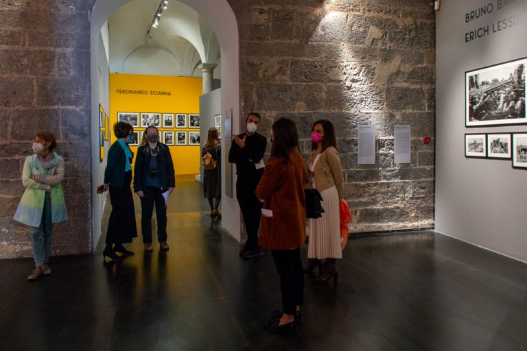 Introdotta da un omaggio ad Henri Cartier-Bresson e al suo viaggio in Italia negli anni Trenta, la mostra prende avvio con due serie strepitose, una di Robert Capa, dedicata alla fine della Seconda Guerra Mondiale, che mostra un paese in rovina, distrutto da cinque anni di conflitto, e una di David Seymour, che nel 1947 riprende invece i turisti che tornano a visitare la Cappella Sistina: l’eterna bellezza dell’arte italiana che appare come il segno della rinascita di un’intera nazione.