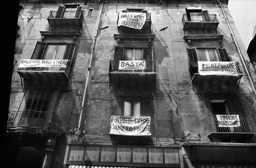 Nelle fotografie di Tony Gentile la città, Palermo, appare come una specie di Beirut negli anni della guerra, assassinata e trucidata anche lei. Ma qualche volta fa pensare anche alla New York di William Klein, solo che il frastuono della modernità, in questo caso, è quello delle stragi. Anche qui ci sono le folle, quelle che assistono ai funerali, e bambini, molti bambini, con gli occhi profanati che assistono ai riti della violenza e li incidono nella loro memoria, una memoria che si porteranno dietro come un destino, ma anche bambine, con piccole ali di tulle nelle processioni religiose. C’è la povera e dura vita quotidiana della città. E le facce, tante facce, mute di vergogna. Ci sono giudici, anche, e alcuni grandi mafiosi, come Brusca e Riina, che quelle stragi hanno perpetrato. E politici, molti, che non si sono fatti scappare il palcoscenico per la loro retorica e ipocrisia. E ci sono anche i morti ammazzati, naturalmente. Questo è Luce e memoria, di Tony Gentile.