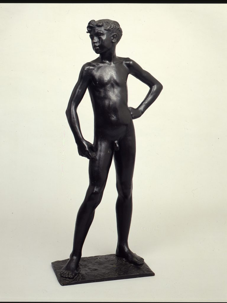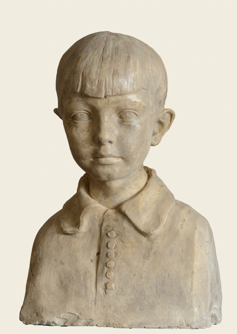 Guido Galletti (Londra 1893 – Genova 1977) è stato uno dei maggiori esponenti della scultura del Novecento ligure. Nato a Londra in una famiglia di orafi genovesi, si formò poi all’Accademia Ligustica di Belle Arti a Genova ed entrò presto a far parte della vita artistica della città. La Prima guerra mondiale, a cui Galletti prese parte da combattente, lasciò un impatto profondo nella sua ricerca artistica. Tra le due guerre l’artista fu impegnato nella realizzazione di diverse opere commemorative dei caduti e, allo stesso tempo, eseguì una serie di opere di carattere intimo, ritratti di amici e famigliari, tra cui le due opere in mostra: Giacomino (1922 circa) e Gioiella (1940), che pervenute alla Wolfsoniana in donazione di Federico Bagni, l’erede dell’artista, rappresentano una preziosa testimonianza del suo percorso creativo. La prima è il gesso del Busto di fanciullo. Giacomino in bronzo, esposto alla Promotrice genovese del 1922 e acquistato dal Municipio (ora nella collezione della GAM di Genova); la seconda è la versione in ceramica dell’omonimo ritratto marmoreo esposto alla XXII Biennale di Venezia del 1940, quando l’artista ottenne il premio come migliore scultore italiano. I materiali e l’immediatezza esecutiva mettono ancora di più in evidenza il delicato e intimo carattere famigliare e psicologico di tali opere.