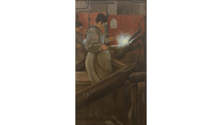L’opera faceva parte della serie Lacrime di guerra, realizzata dall’artista dopo la Prima guerra mondiale: una straziante contestazione pittorica degli orrori del conflitto globale, in cui per la prima volta le potenze mondiali si scontrarono utilizzando la micidiale tecnologia delle armi moderne. Esposto alla Prima biennale romana, tenutasi nel 1921 al Palazzo delle Esposizioni di Roma, il dipinto raffigura una donna in fabbrica che sta assemblando un proiettile. L’immagine, carica di temi attuali e moderni, femminista e patriottica, mostra il carattere contraddittorio di tale azione: la donna, che sta per dare alla luce una nuova vita, partecipa alla produzione di un’arma di morte. La serie Lacrime di guerra, nonostante i riscontri positivi della critica, non trovò altrettanto entusiasmo nell’establishment politico; con l’avvento del fascismo la visione umanista e pacifista di Costantini fu osteggiata dall’emergente clima di esaltazione retorica dell’eroismo e del militarismo.