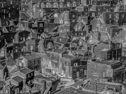 Lo sguardo di De Luigi sul paesaggio italiano origina dal passato, dal ricordo delle giornate trascorse insieme al padre al Museo di Roma davanti ai dipinti e alle incisioni che ci hanno restituito l’immaginario del Grand Tour, il viaggio che tra il Seicento e l’Ottocento portava in Italia giovani aristocratici, intellettuali e borghesi di tutta Europa. Su quell’immagine dell’Italia, sedimentata nelle fotografie degli Alinari e del Touring Club, è intervenuta l’opera di quegli autori che, dall’esperienza di Viaggio in Italia in poi, hanno contribuito a cambiare e guidare il pensiero sulla rappresentazione fotografica del paesaggio italiano.